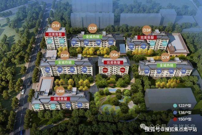 洋房地块鸟瞰:面积段:建面约138㎡楼栋数:高层地块6栋 洋房地块7栋梯户比:高层2梯3户 洋房1梯2户总层数:高层23~26层 洋房5~8层