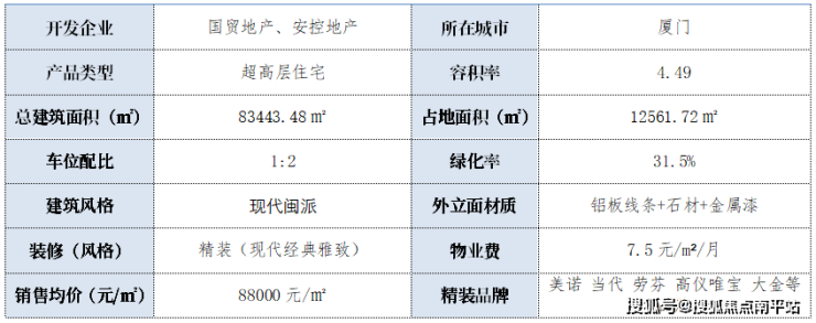项目位于厦门市思明区厦禾路与将军祠路交叉口东南侧,规划三栋超高层第四代立体生态住宅,产品为建面约199-575㎡平层住宅,全盘共205户。国贸地产与安控地产联合开发,依托企业品牌基础,注重社区氛围营造与产品品质打造。