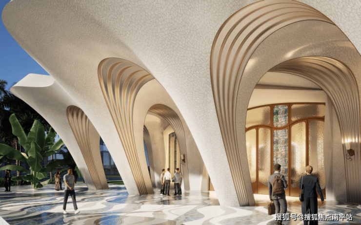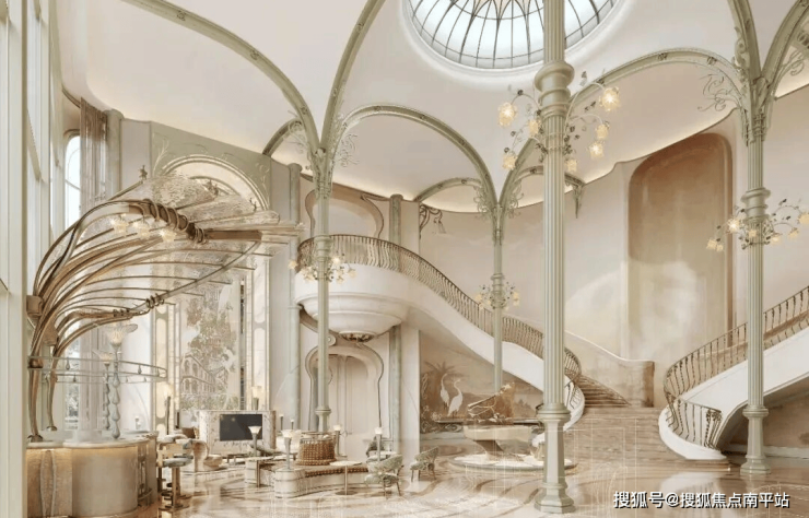 大量运用了流动的曲线元素,打破了现代奢宅的极简冷淡工业风,更赋予建筑一种灵动的美感。