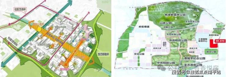 中央稻田公园为核心开放空间及中央轴心,政务组团、文化中心、体育中心等环绕