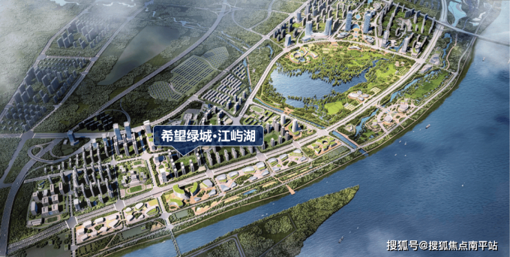 希望绿城·江屿湖, 以 国际滨水大都会规划 (包括星级酒店、超甲写字楼、滨水商业街、高端江景住宅),占据了片区当之无愧的桥头堡核心地段。