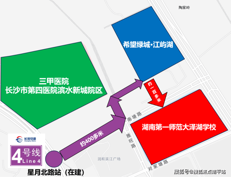 河西唯二公立三甲综合医院: 长沙市第四医院滨水新城院区,就在 项目周边,为健康护航。