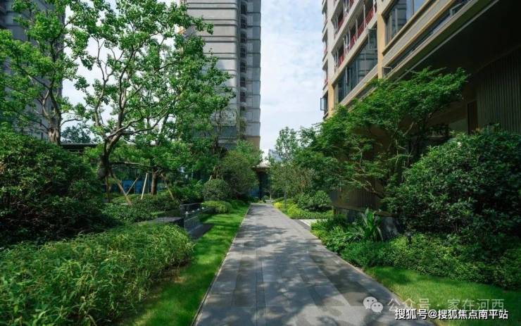 步入小区,映入眼帘的就是一条"归家绿道",两侧的高大乔木就像"卫兵"在夹道欢迎。