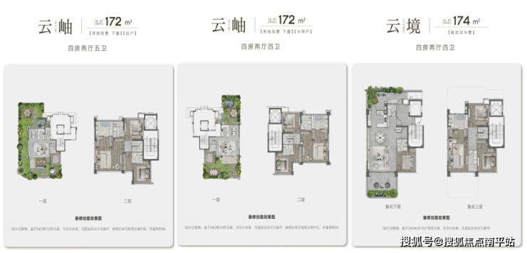 项目打造建面约129-266㎡全改善户型,涵盖四代小高层、复式洋房、天地院墅三大品类,全系精装交付(266㎡别墅毛坯),小高层两梯两户、洋房一梯两户、叠墅独门独户配私梯。129-139㎡四代小高层享独立电梯厅、15.6米南向面宽,户户带空中花园,270°环幕视野;174㎡复式洋房为动静分层设计,配行政级双套卧、南北双花园,全屋9幕采光;189-198㎡叠墅私梯入户,下叠享南北双院、上叠拥星空露台,300㎡以上户型设社交型LDK系统,兼顾空间尺度与居住私密性。