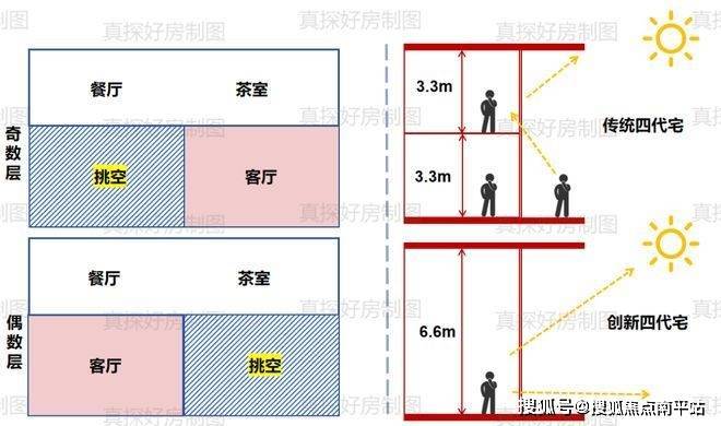 从已公开的240-580㎡的面积段来分析,探长本以为是复式类产品,但据另一位去现场看过的粉丝反馈,这次建发创新地打造了错层挑空产品,客厅层高做到了6.6m,可以极大缓解传统四代宅的露台外挑带来的采光和私密性的问题。