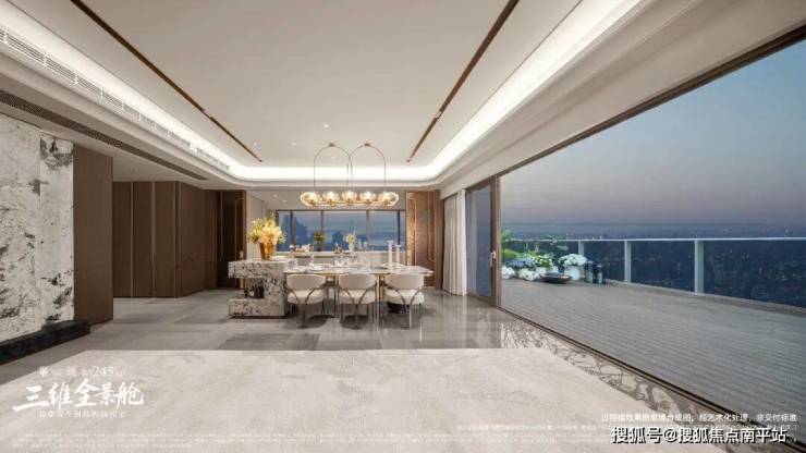 传统豪宅的景观面,无论多宽,本质上仍是在墙上开设“取景框”,视野是定向的、有边界的。而三维全景舱通过物理边界的消融,实现了 “场景包裹” 。