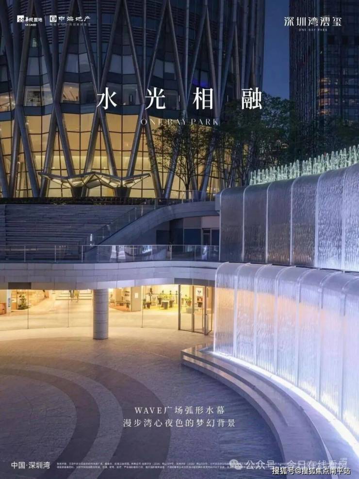 水幕诗:WAVE广场弧形水幕、湾心流域景观,让建筑与艺术共融,漫步间,如行走于流动的画卷。