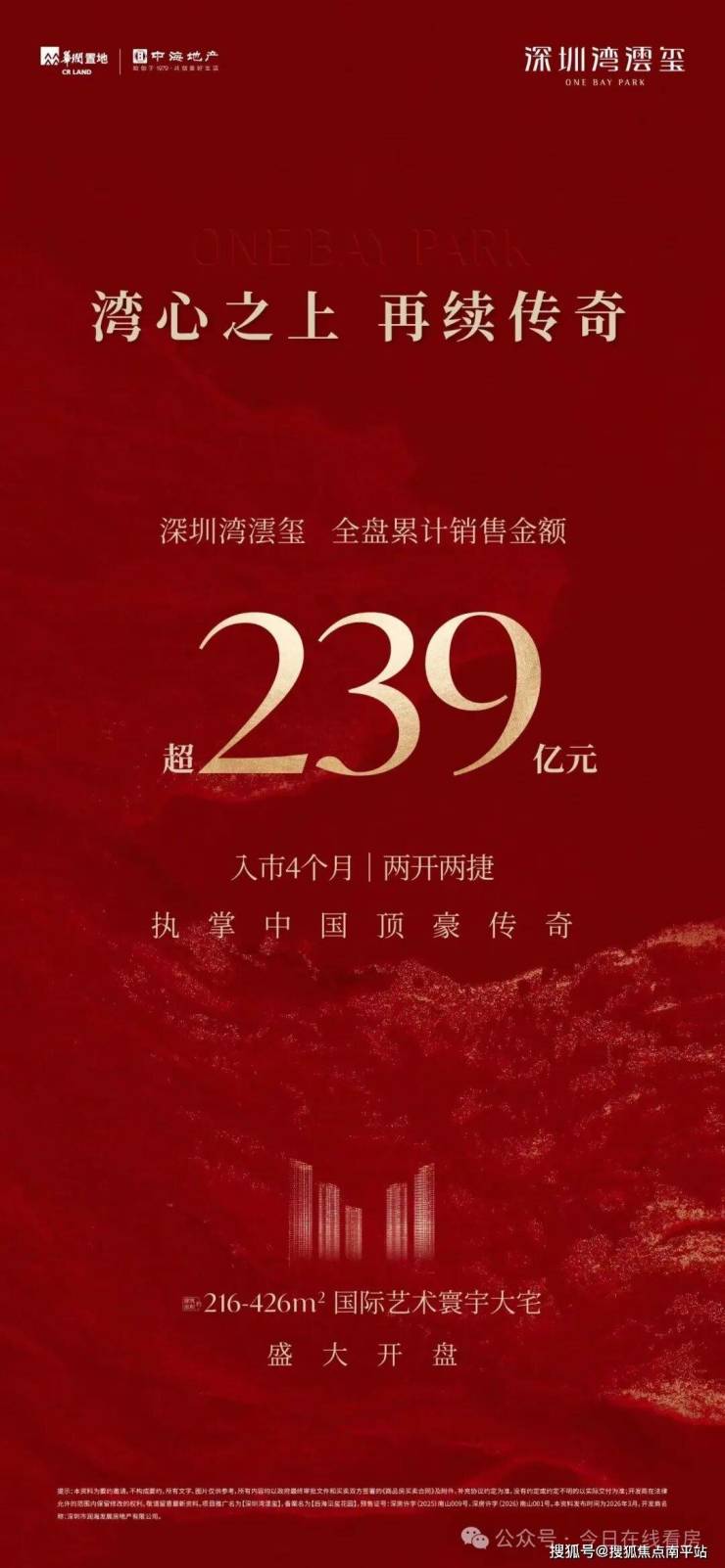 两开两捷,全盘销售总金额超239亿,南区加推开盘当日销售额超50亿,印证了市场对深圳湾顶豪的高度认可。