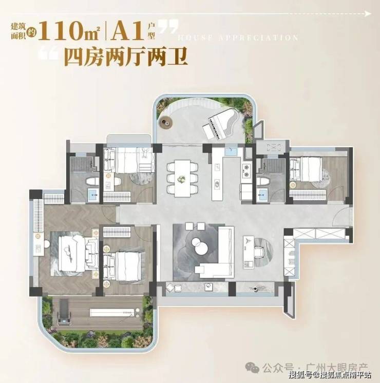 招商的拍地条件注定了,它会成为广州第一个拥有40%全赠送空中花园+25%阳台占比的新盘,使用率将会接近150%。