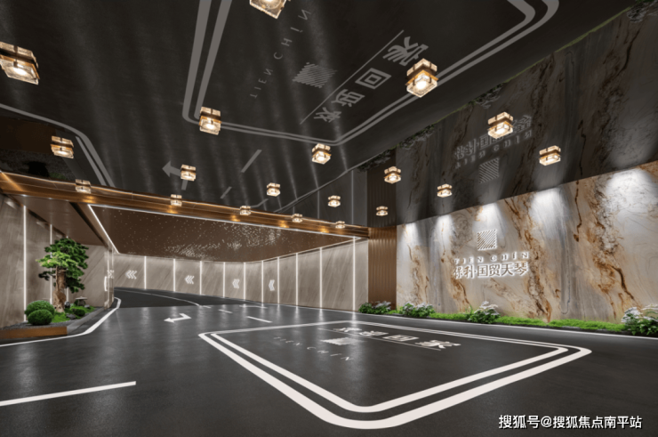 走进社区,迎面而来是一座奢华大门,以 全面玻璃搭配一体化弧形铝板,打造约50米恢弘大门。