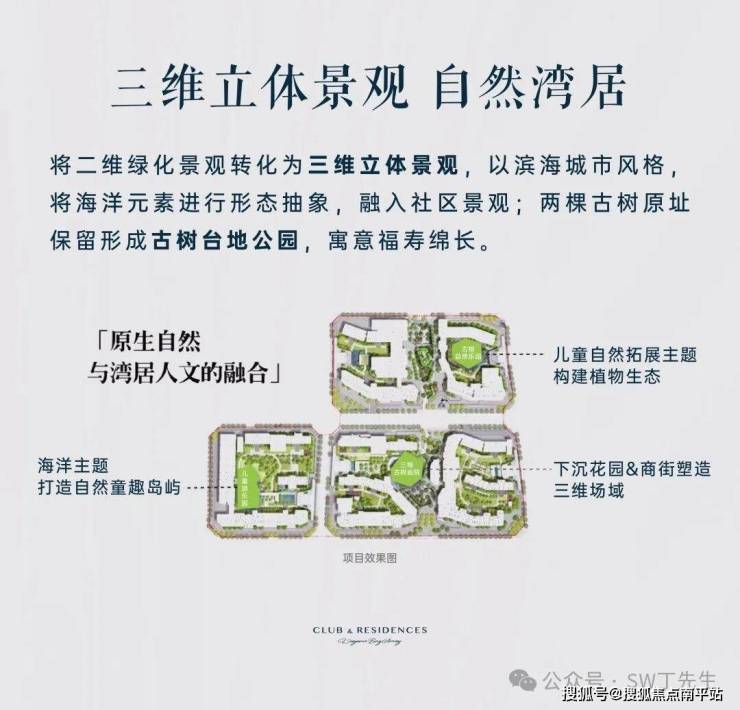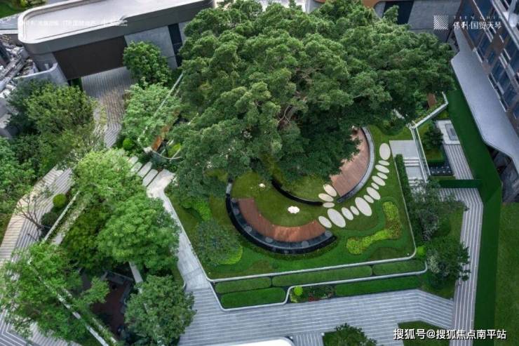 走入其中,小区内部两棵百年古树尤为醒目,项目 依托天然古树原址保留形成古树台地公园,寓意福寿绵长,给社区生活带来十足的亮点。