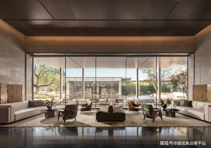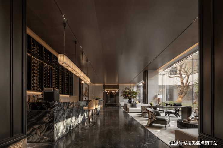 奢阔的尺度与强烈的纵深感勾勒出光而不耀的空间艺术,精心调控的光线柔化后流转出细腻的光泽,这种不着痕迹的设计,成就低调奢华的当代意境。