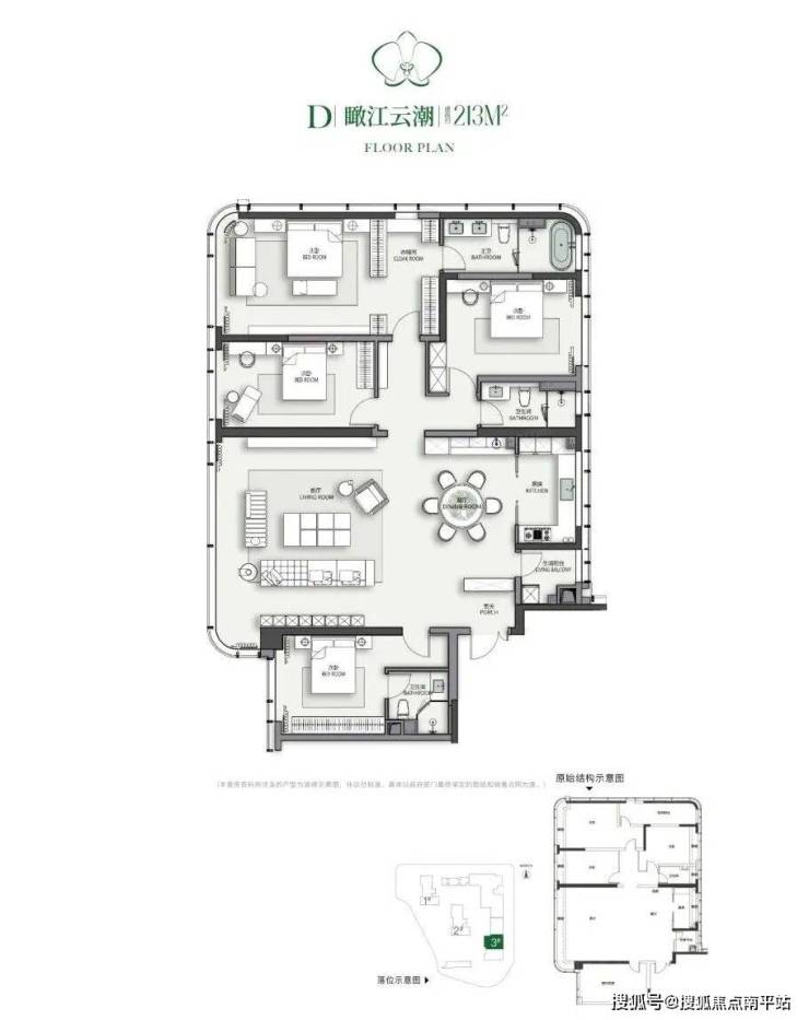 主力户型-揽江,建面约249㎡, 四房三厅三卫双套房设计,根据江景位置,高定角厅270°观江户型。