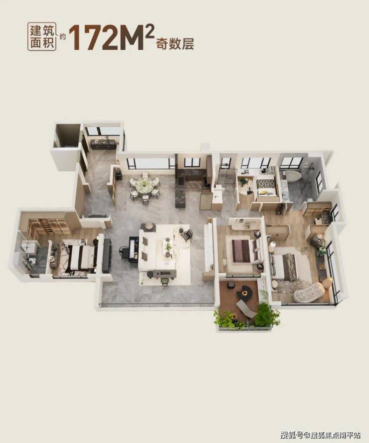对了,还有建面约172㎡户型(奇数层/偶数层),当前没有样板间,我们来看一比一还原创意样板间的立体户型来解解渴。