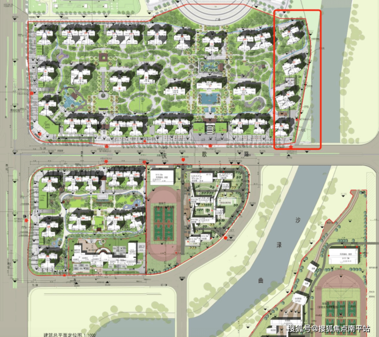 澐境组团位于整个项目东侧,楼下就是沙渌曲河段,妥妥的滨水居住区,北望青山,远眺邕江,近赏总部基地楼宇、南A中心、水景,看得到美景,看得见繁华,天然形成了“外部繁华,内部静谧”的格局。