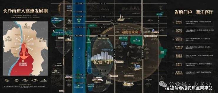 省府主城核心,总投资约316亿元,定位为“省府门户,湘江客厅”,坐享约2.76公里滨江岸线,约70%省级行政机构,60余家重点企业总部林立,约70亿奥体中心,约48亿国家医学中心等省级重点项目环伺,区域发展进入高速发展期。
