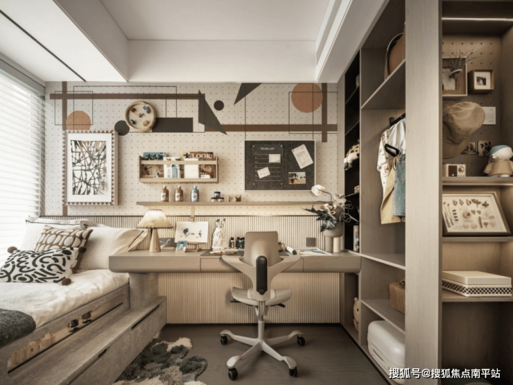 89㎡户型硬装设计为暖色调,全屋呈现温馨舒适的整体氛围;入户玄关柜,开敞交互式厨房设计,搭配方太三件套,让家庭生活更具有温度;客厅阳台,凸窗双面采光、木饰面及全屋玻纤壁布,高级同时具有格调;软装设计搭配皮革、木质、贵金属,运用不同材质的交叠,与空间关系相呼应;全屋中央空调,新风系统, 客厅及主次卧配有电动窗帘,客厅与儿童房配有监控,关怀无微不至。