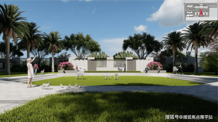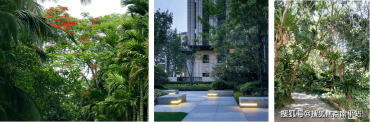 以热带园林点缀归家动线,并形成开阔的公共活动场域,为邻里活动提供高质量社交空间;