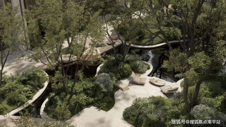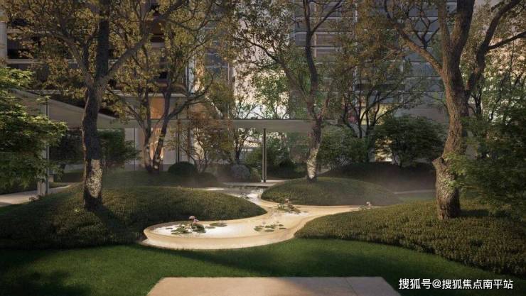 在东侧:地块整体抬高约1米,洋楼区整体抬高约2.2米,结合高层、洋房区首层全架空,搭建一座“静谧高台”,既隔绝城市喧嚣,也让视野最大化。