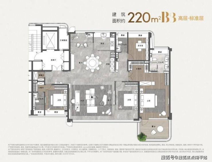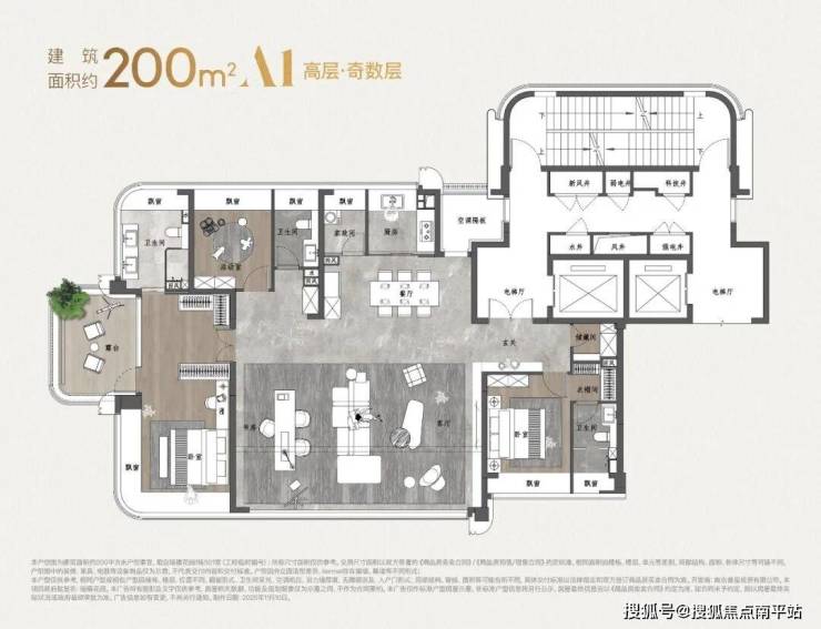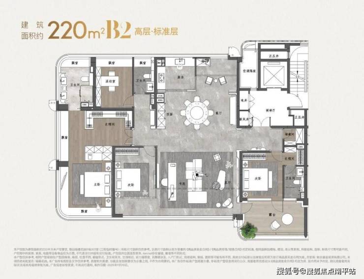 建面约220㎡高层户型图: