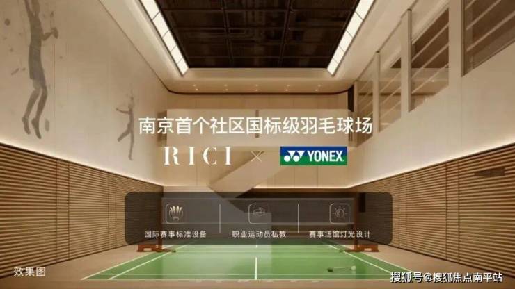 会所的羽毛球场, 与羽毛球界头部品牌YONEX合作,球网、球架、地垫、羽毛球拍等均按照奥运会级别,未来还将邀请职业运动员提供私教服务。