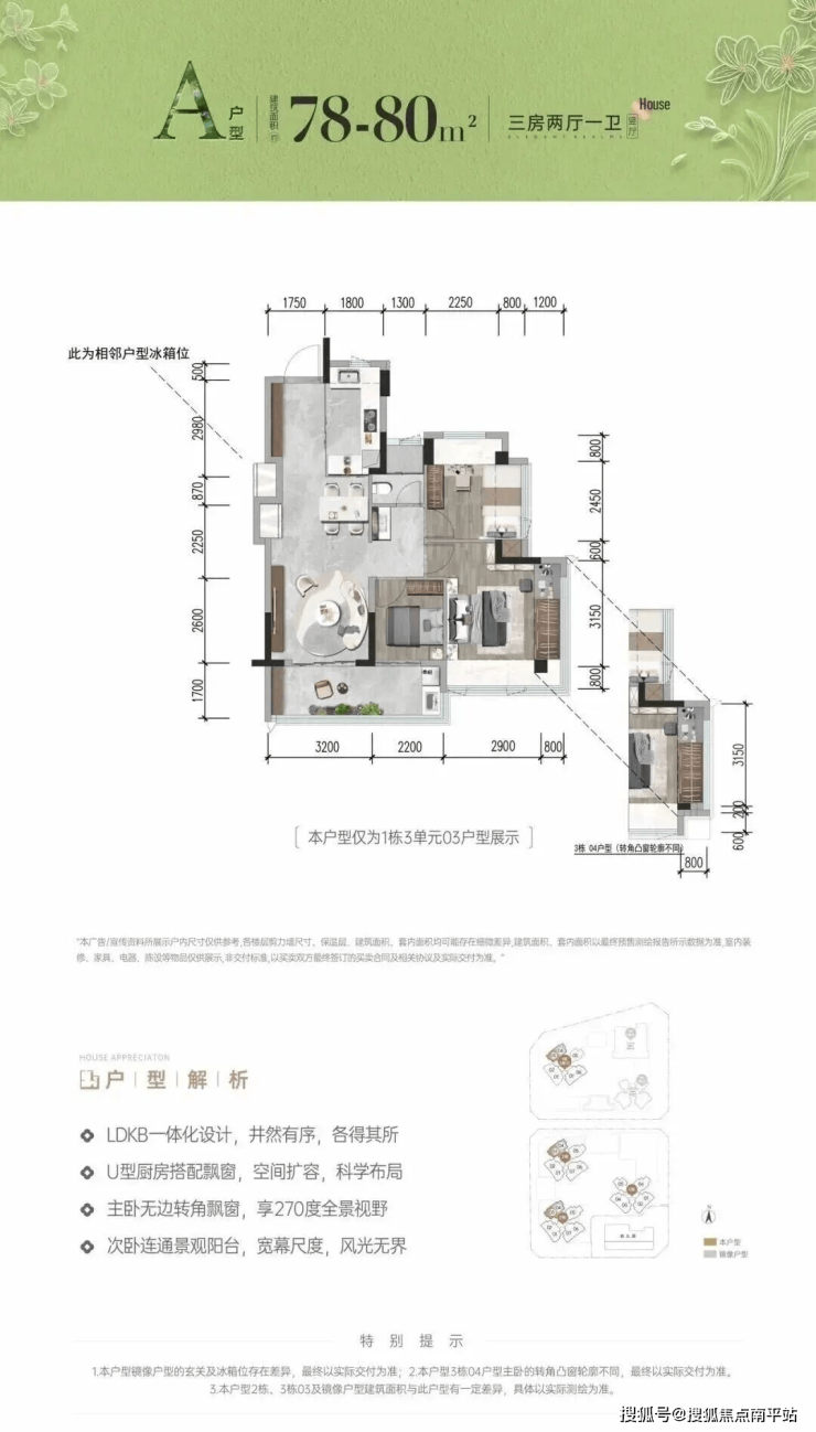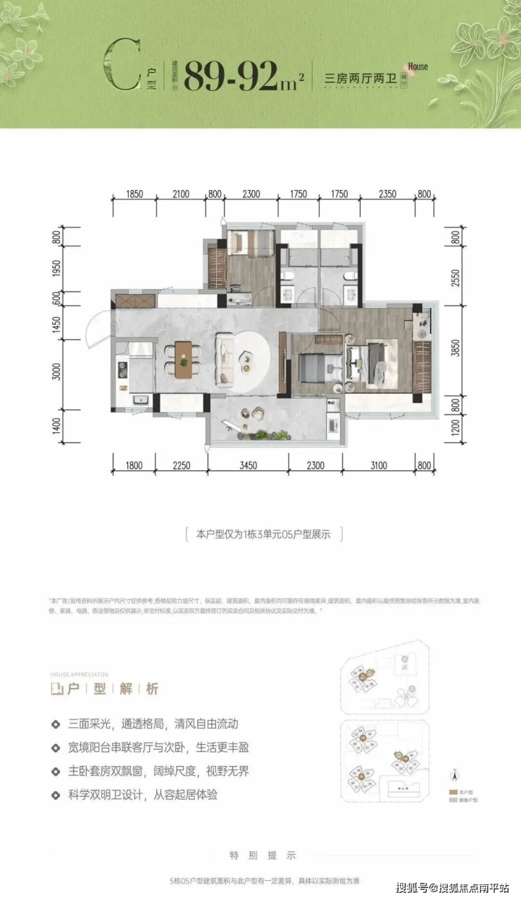 首次推首北地块1栋3单元,约80-92㎡ 3房,共195套,新规使用率高达96%-105%!