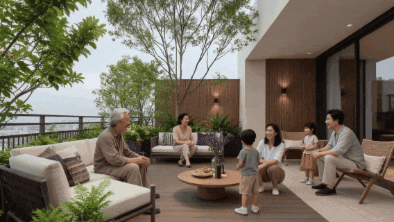 露台更是属于阖家共享的“温情剧场”,盛放亲密无间的相伴时光。将露台打造成一个家庭游乐园,任孩子肆意撒欢,或放置一架天文望远镜,晚上与孩子一起探索斗转星移的奥秘;又或是三代围坐,支起投影幕布,共享一场家庭电影会,天伦相聚,笑语盈庭,每一刻便都成了生活珍贵诗篇。