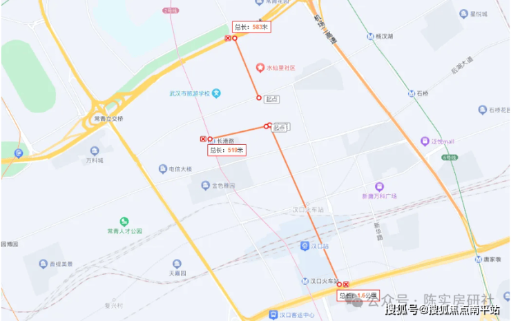地铁:距 2号线长港路站约500米(实测步行12-13分钟),12号线(在建)汉口站北广场站约700米,远期规划23号线预留用地。