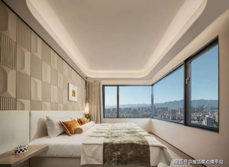 户型设计则紧紧围绕“采光”与“观景”两大核心做足文章。所有户型南向均配备超大面宽阳台。端户的主卧更是贴心设计了270度大型折角窗,将阳光与闽江、城市双重景观最大限度地引入室内,有了“南瞰金山 北眺闽江”的风景。