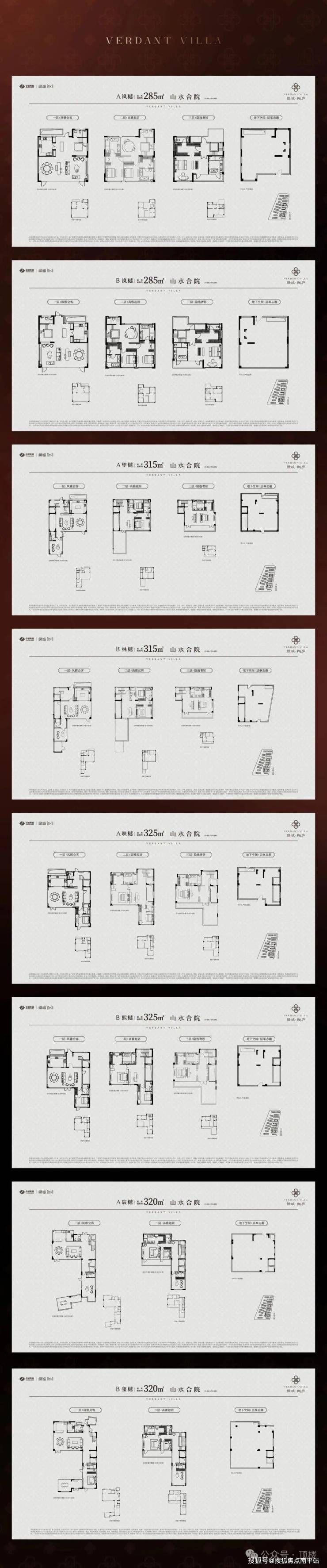 •整体规划打造建面约285-325㎡山水合院(2-3F)、建面约200-300㎡诗境叠墅(4-6F)