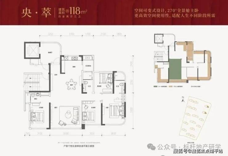 整体布局与建面约118㎡相似,但在尺度感是plus版。