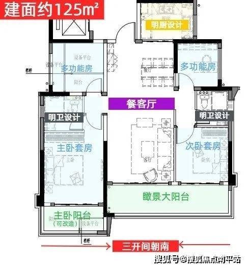 要知道,市面上常规125㎡户型,南向面宽也就10米左右,阳台能做到6.5米已经相当不错了。