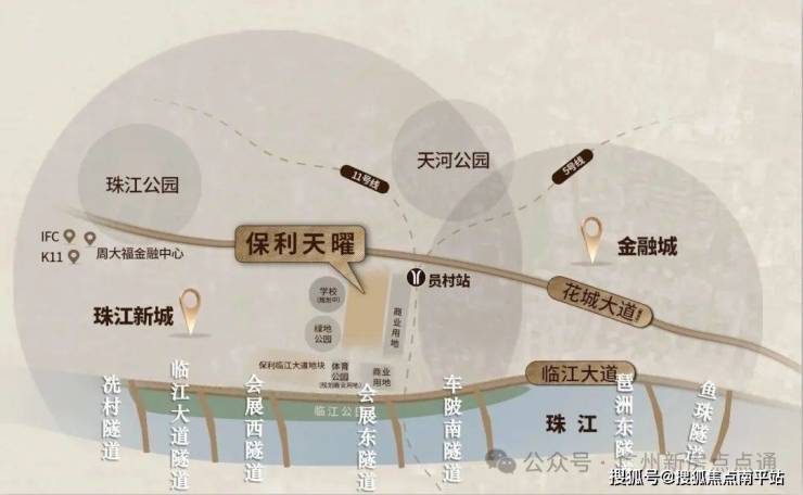 ◎ 缝合“珠金琶”一体化 天曜傲居核心点位珠城-金融城(东西向):项目北侧花城大道规划东扩南移,项目南侧临江大道隧道已通车——广州主要城市干道,占据着珠江新城千亿级的市政配套,布局了城市顶级城市建筑群,汇聚了广州鼎豪住宅;双主干道将贯通珠江新城与金融城,禀赋核心资源向东贯通的城市动脉;珠城、金融城-琶洲(南北向):政府规划8条过江隧道,目前已建成车陂南隧道,项目东边的会展西隧道预计明年2026年通车;
