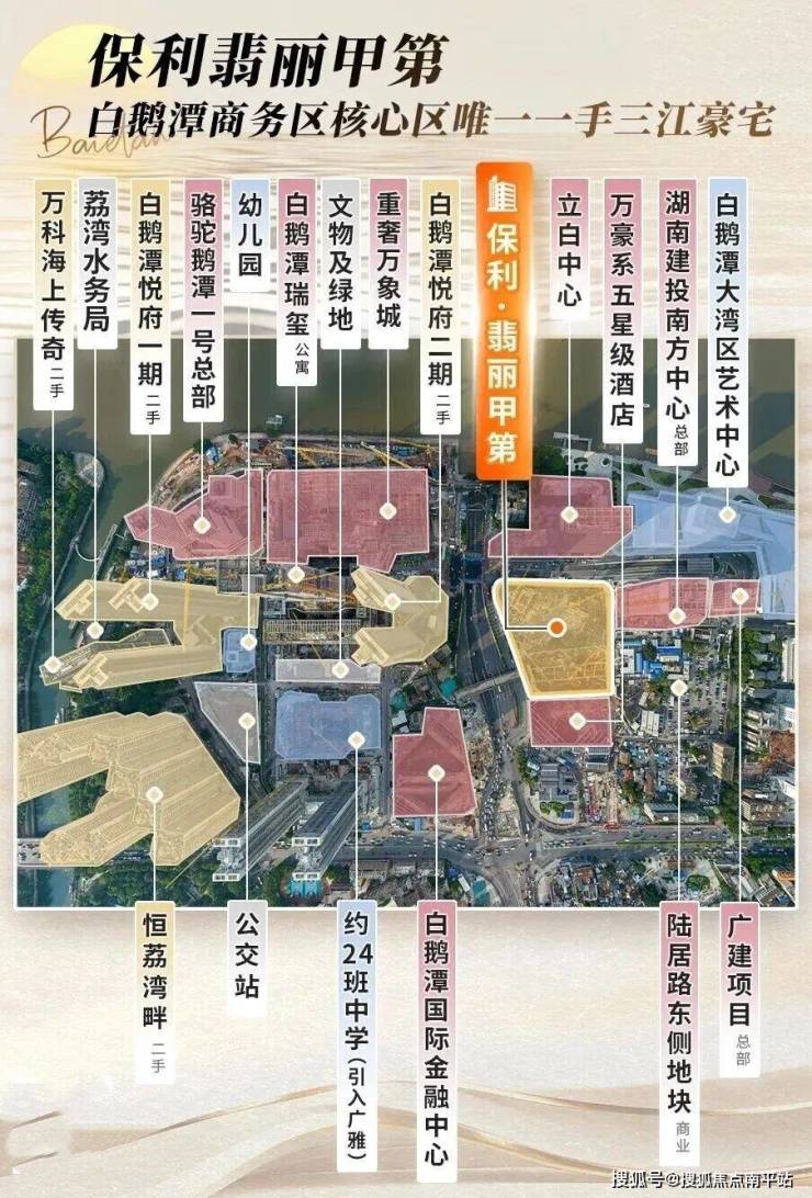保利・翡丽甲第择址白鹅潭商务区核心陆居路地块,占据三江交汇的绝版地段,周边汇聚城市顶级配套资源,是白鹅潭核心区不可复制的城市留白之地。目前白鹅潭核心区的住宅项目已基本清盘,陆居路地块成为区域内唯一在售住宅用地,承接板块成交热度的同时,更凭借自身天赋优势,有望成为白鹅潭新的豪宅标杆。项目周边商业、交通、人文、教育、医疗配套一应俱全,广州首座 M1 级万象城、聚龙湾太古里两大重奢商业地标环伺,白鹅潭大湾区艺术中心近在咫尺,万豪系五星级酒店正式签约进驻,形成集高端商业、文化艺术、星级酒店于一体的全能生活圈,这样的顶配配套,即便在珠江新城的千万级豪宅中也极为罕见。-具体更多详情,拨打售楼热线:☎️☎️400-159-8559接通后输入6666【官方售楼中心】