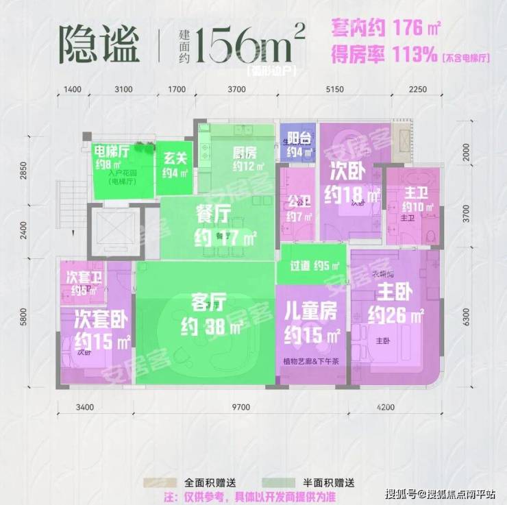 都是17F高的小高层,4房3卫,4开间朝南,独立电梯厅入户,双套房设计,但是有一个暗卫。客厅开间6.5米,拓宽后9.7米,即使不拓宽也是很够用的。主卧面宽4.2米,可设置独立衣帽间。