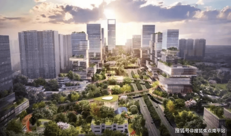 超大规模综合体:南北延续1.3公里,总建筑面积达59万平方米,涵盖休闲公园、轨道交通、学校、高端商业、商务办公等多种业态。