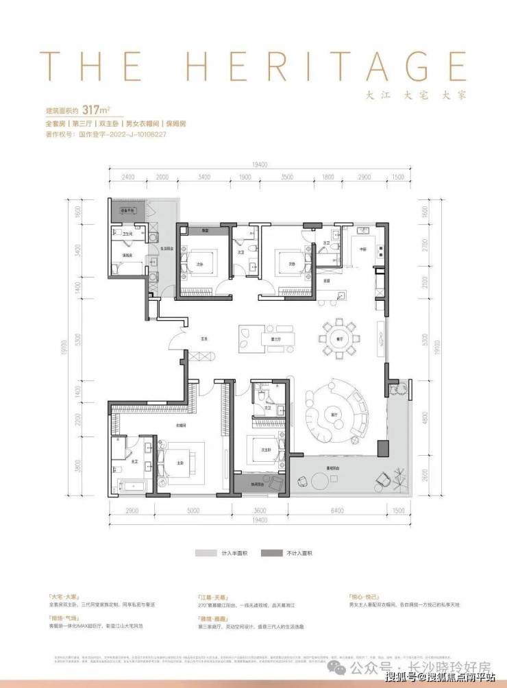 【283㎡户型鉴赏】:约17.6米转角大阳台,BLDK寰幕瞰江竖厅,双主卧+男女主人双衣帽间,礼呈家族岁月
