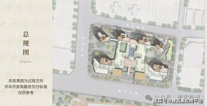 全盘仅规划建设6栋35-50层高的超高层江景住宅,整个项目采用前高后低(南低北高)的阶梯式半围合布局,使得每一户都能拥有南向望江的绝美景观。