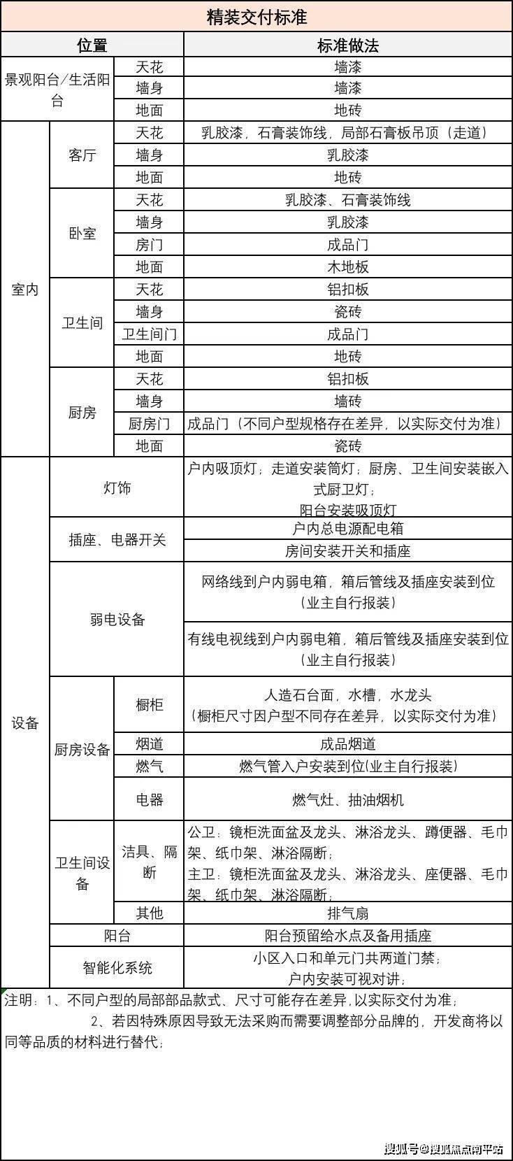 精装修交付标准: