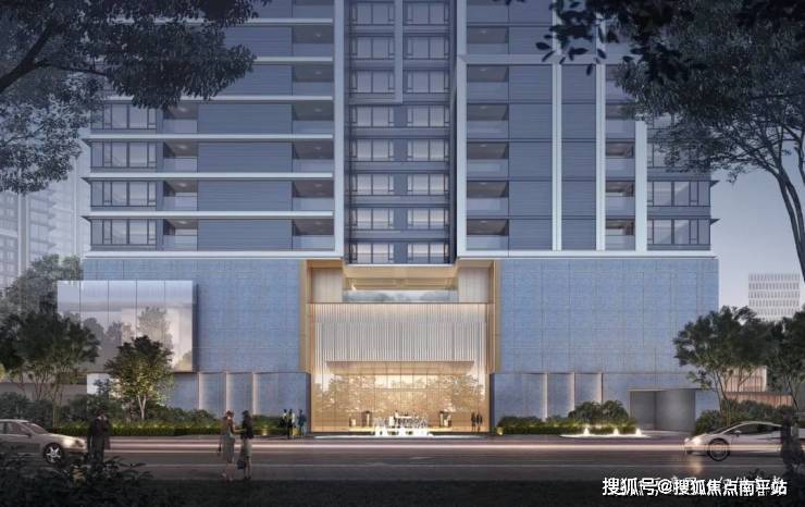 悦府二期的奢华质感,贯穿了项目每一处细节。在小区入口,项目采用围合酒店式落客庭院,约12米高和约20米宽社区入口 采用奢侈品店立面打造手法 ,以及高约5.5米奢石景墙,造价高昂,凸显出项目高贵的质感。