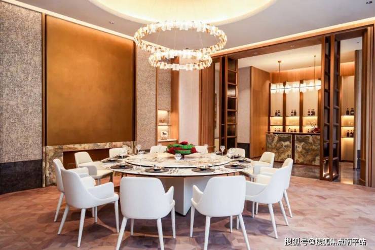 社区入口以天然石材构筑约40米超尺度门庭,恢弘气势扑面而来;叠水景观与仿紫铜照壁相映成趣;艺术回廊吸顶灯设计灵感源自巴黎爱马仕总店,光影流转间营造仪式落客空间;车库坡道灯光随行渐次点亮,多维空间体验尽显尊崇。