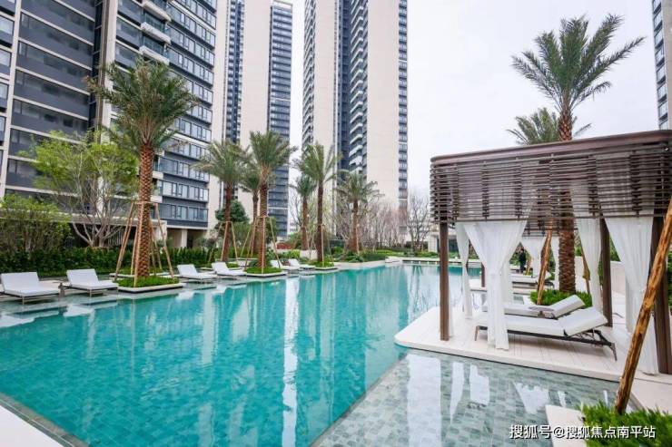 星级泳池以巴厘岛绿马赛克铺底,池畔9米高银海枣摇曳生姿;双面户外会客厅,一面畅享泳池水吧,一面拥抱亲子草坪,邻里互动乐趣盎然。