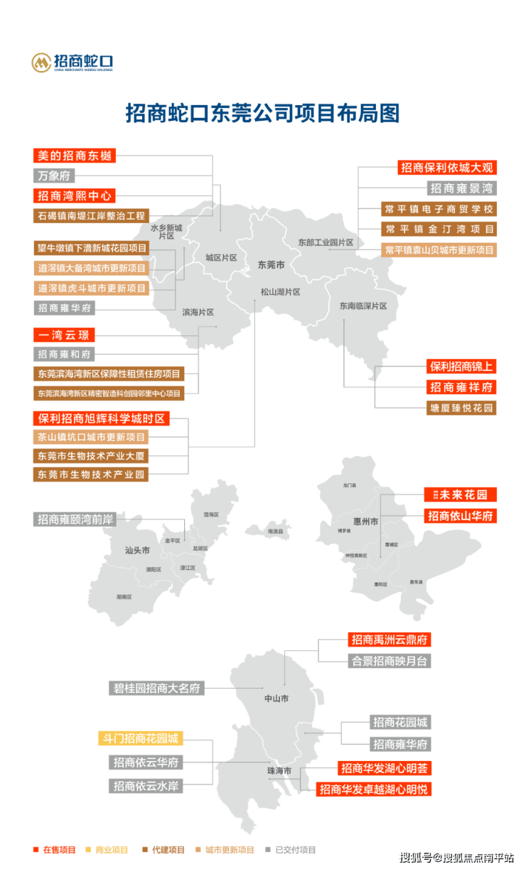 招商蛇口自进驻东莞以来,已形成“多点开花、业态复合、综合多元”的业务布局。近两年来,招商蛇口紧抓城市更新、产业转型升级、城市品质提升的发展机遇,在莞惠汕珠中大湾区五城中标多个代建项目并获取多个城市更新项目前期服务商资格,涵盖产业园区、岸线公园、还迁安置房、教育配套等项目类型。