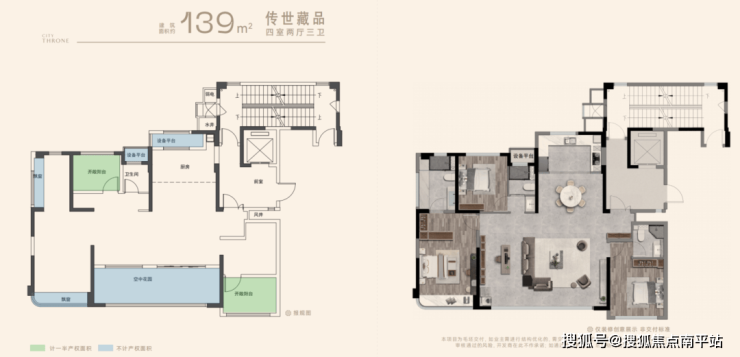 建面约139㎡户型改造后装修效果示意图