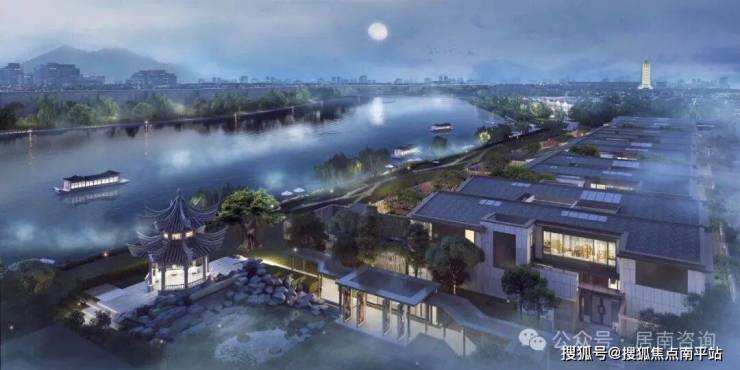 3、主城稀缺的巨无霸土地,通过低密度中式合院(容积率仅1.09)、全球顶级城市度假酒店、开放式商业街、城市景观广场,在秦淮河畔打造最南京、也最国际化的城市新名片;