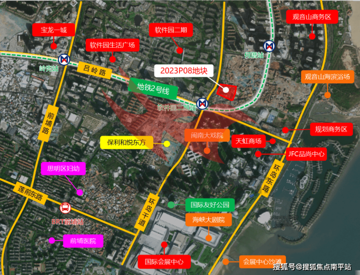 交通方面,地块周边交通路网四通八达,周边密布环岛干道、环岛东路、会展路、吕岭路等城市主干道,此外,地块近享便捷的轨道交通,西南、东北两侧分设地铁2号线软件园二期站、何厝站。