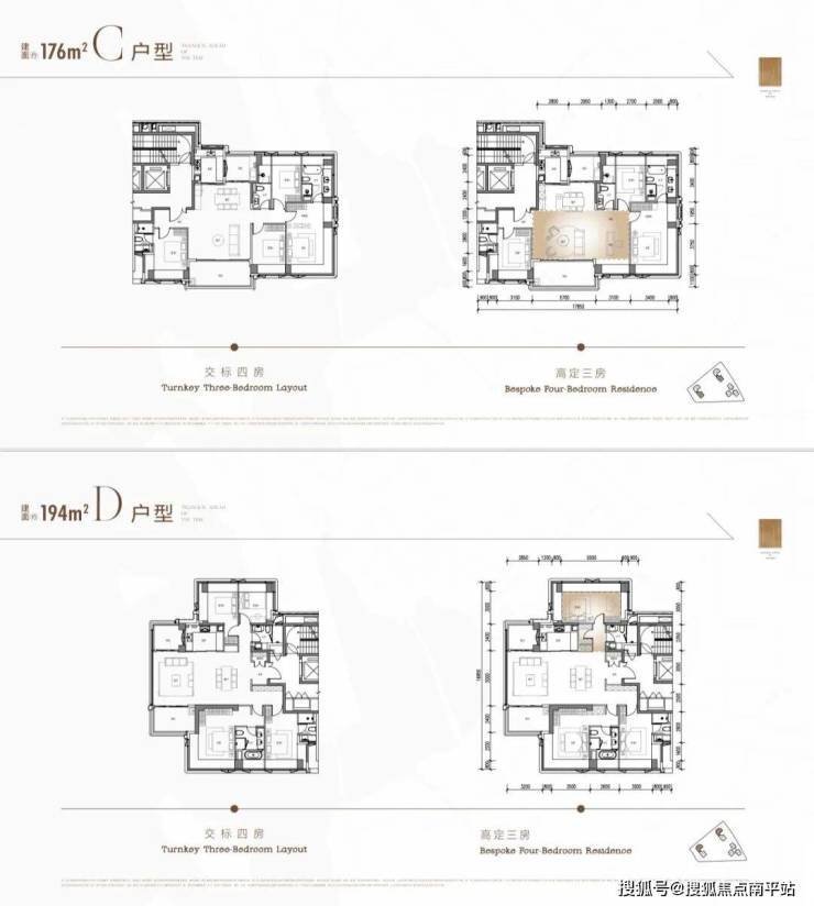 176/194㎡户型可选近境典雅/召禾隐奢风格,(2梯2户)独门独户设计,非常私密性。