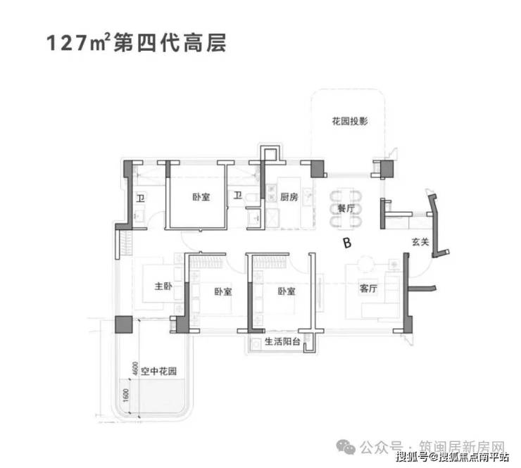 143平以上都是2梯2户,四代住宅,送露台