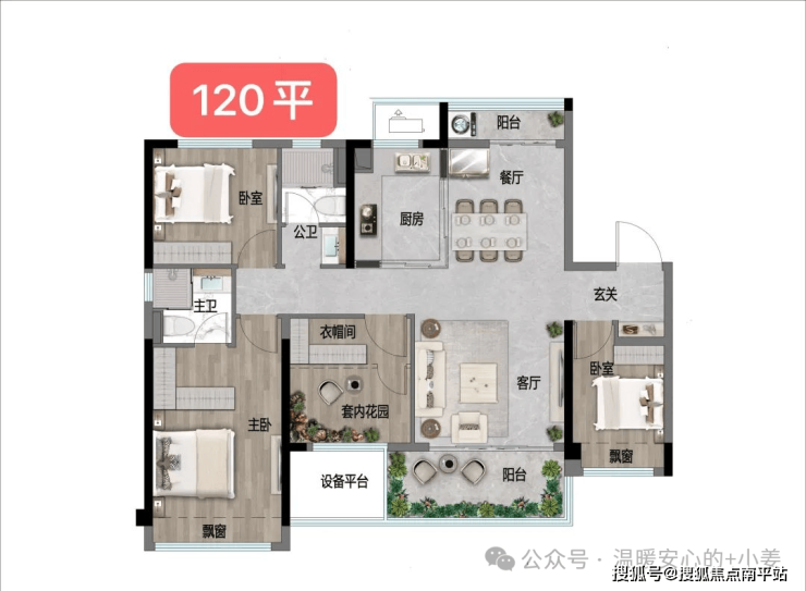 主力户型96-173㎡,得房率高,三开间朝南,部分户型带270°环幕视野、地暖及新风系统。