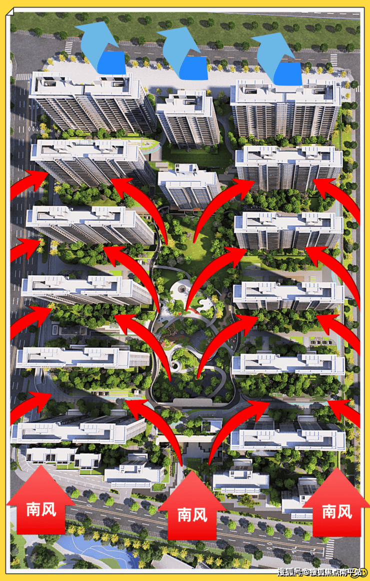 3)通风:从南到北的穿堂风,北边两排建筑也有效挡住了冬天的北风,夏天南风徐徐空调都可以少开一个月,节约成本就是实在的实惠。